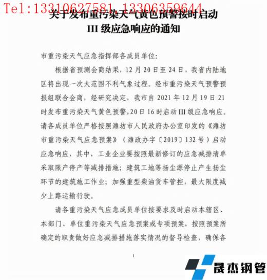 根據(jù)氣象預(yù)測,自12月19日起,唐山市受弱氣壓場控制,風(fēng)力小、濕度大,擴(kuò)散條件差,將出現(xiàn)中至重度污染過程,達(dá)到橙色預(yù)警級別。為有效應(yīng)對此輪污染過程,最大限度減輕污染程度,按照省大氣辦《關(guān)于加強(qiáng)管控積極應(yīng)對本輪污染過程的提醒函》(冀氣領(lǐng)辦〔2021〕119號)要求,市重污染天氣應(yīng)對指揮部決定,自2021年12月19日12時(shí)全市啟動(dòng)重污染天氣Ⅱ級應(yīng)急響應(yīng),具體解除時(shí)間另行通知。鋼鐵相關(guān)信息如下: