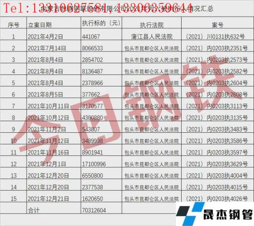 免責聲明:本網站(山東聊城晟杰無縫鋼管廠m.qiazhuo.cn)刊載的“超7000萬!包鋼股份年內15次被法院執(zhí)行!”等均源于網絡,版權歸原作者所有,且僅代表原作者觀點,本文所載信息僅供參考。轉載僅為學習與交流之目的,如無意中侵犯您的合法權益,請及時聯(lián)系刪除。本網站刊登此篇文章并不意味著本站贊同其觀點或證實其內容的真實性,我們不對其科學性、嚴肅性等作任何形式的保證。如果侵犯了您的版權,請盡快聯(lián)系我們予以撤銷,謝謝合作!