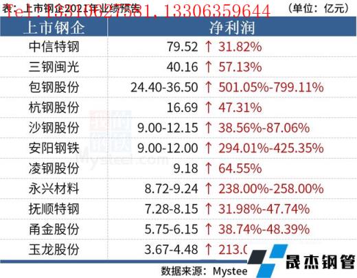 免責聲明:本網站(山東聊城晟杰無縫鋼管廠m.qiazhuo.cn)刊載的“2021年鋼企利潤創新高,中信特鋼實現凈利近80億”等均源于網絡,版權歸原作者所有,且僅代表原作者觀點,本文所載信息僅供參考。轉載僅為學習與交流之目的,如無意中侵犯您的合法權益,請及時聯系刪除。本網站刊登此篇文章并不意味著本站贊同其觀點或證實其內容的真實性,我們不對其科學性、嚴肅性等作任何形式的保證。如果侵犯了您的版權,請盡快聯系我們予以撤銷,謝謝合作!