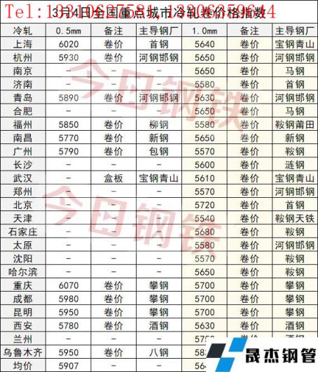 截至3月9日,全國主要城市0.5mm冷軋板卷均價5966元/噸,周環比上漲59元/噸;1.0mm冷軋板卷均價5708元/噸,周環比上漲65元/噸。以下為3月4日與3月9日全國重點城市冷軋板卷價格指數對比情況: