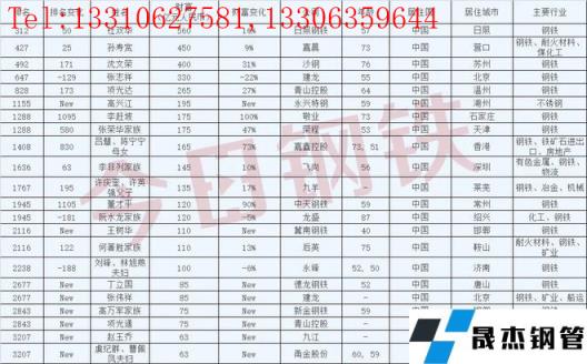 其中日照鋼鐵杜雙華以560億元人民幣榮登胡潤排行榜312位,嘉晨鋼鐵孫壽寬以450億元人民幣榮登胡潤第427位,沙鋼沈文榮400億元人民幣榮登胡潤492位,還有更多優秀鋼企老總入列詳情如下: