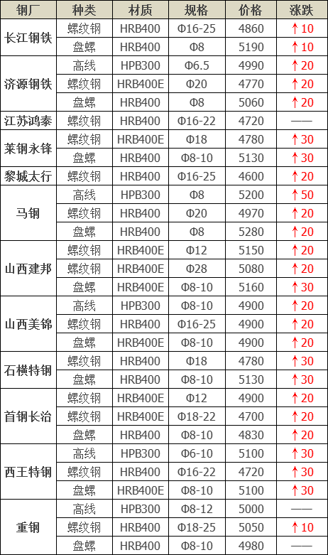 上調(diào)11家,占比91.7%,調(diào)價幅度10-50元/噸;