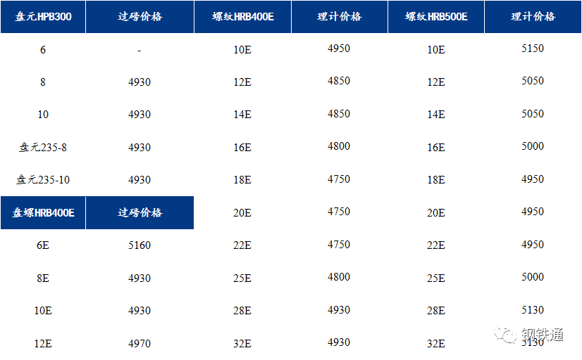 2、盤螺平穩(wěn):HRB400EΦ8-10mm盤螺指導價格為4940元,6mm加價500元/噸;