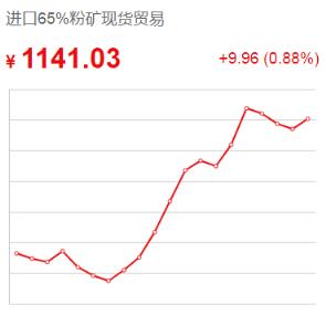 19日,根據今日鐵礦的價格顯示,進口65%粉礦現貨貿易價格漲9.96收于1141.03元/噸,漲幅0.88%;進口65%粉礦到岸價漲1.05收于155.65美元/噸;國產65%鐵精礦走穩收于1008.16元/噸。