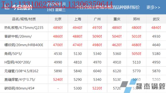 19日各地市場穩中個別上調:上海市場螺紋4650-4690,西城抗震4700,其他4570-4620,興鑫抗震4630,聯鑫黃海抗震4640,盤螺4750-4980,高線亞新4650;北京市場,河鋼小螺紋4740-4760,大螺紋4630-4650,盤螺4810;杭州市場螺沙4730中4730西城4720浙江華宏4620江蘇鑌鑫4620長達抗震4720線材中天4930亞新4680聯鑫黃海盤螺4800;福州市場現線三鋼4970三寶4950,螺三鋼4760三寶4740大東海4740吳鐵4730,盤三鋼5040三寶5020。濟南市場,萊鋼螺紋4810,永鋒、石橫螺紋4800,永鋒、石橫盤螺5080。重慶市場商家陸續離市,現達鋼螺4800、盤4920,永航螺4780、盤4870,瀘鋼螺4780、盤4870。(單位:元/噸)