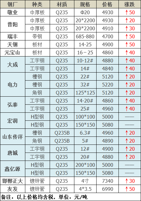 免責聲明:本網站(山東聊城晟杰無縫鋼管廠m.qiazhuo.cn)刊載的“2022年1月19日鋼廠調價通知”等均源于網絡,版權歸原作者所有,且僅代表原作者觀點,本文所載信息僅供參考。轉載僅為學習與交流之目的,如無意中侵犯您的合法權益,請及時聯系刪除。本網站刊登此篇文章并不意味著本站贊同其觀點或證實其內容的真實性,我們不對其科學性、嚴肅性等作任何形式的保證。如果侵犯了您的版權,請盡快聯系我們予以撤銷,謝謝合作!