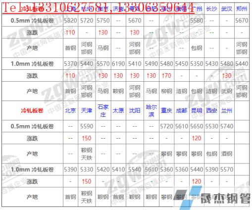 全國23個主要市場1.0mm 冷軋板卷平均價格5475元/噸,較上個交易日上調(diào)12元/噸。