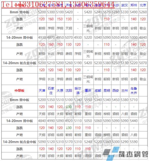 全國23個主要市場14-20mm 普中板平均價格5030元/噸,較上個交易日上調(diào)13元/噸。