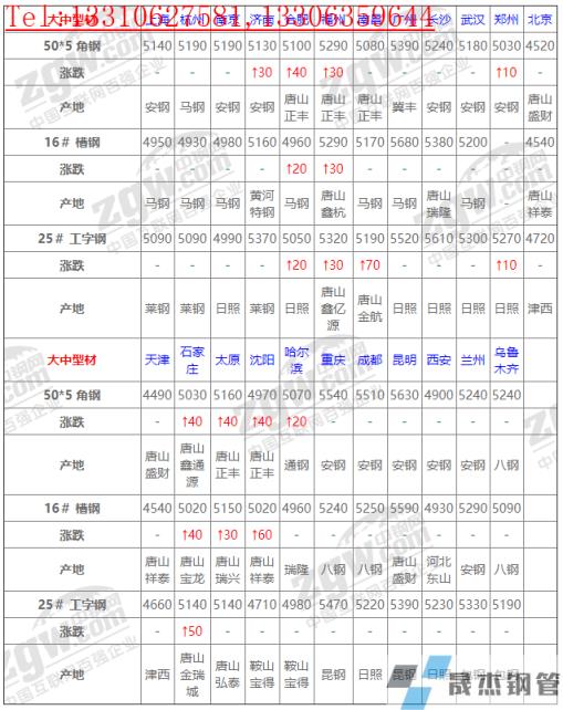 全國22個主要市場16# 槽鋼平均價格5105元/噸,較上個交易日上調(diào)8元/噸。