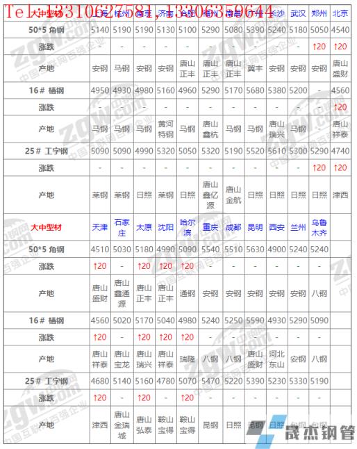全國22個主要市場16# 槽鋼平均價格5110元/噸,較上個交易日上調5元/噸。