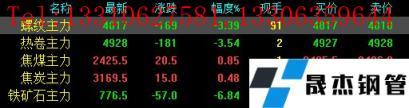 今日螺紋主力期貨跌169,收報4817,跌幅3.39%;熱卷主力跌181,收報4928,跌幅3.54%;焦煤主力漲20.5,收報2425.5,漲幅0.85%;焦炭主力漲15,收報3169.5,漲幅0.48%;鐵礦石主力跌57,收報776.5,跌幅6.84%。