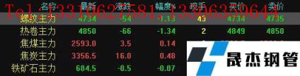 今日螺紋主力期貨跌54,收報(bào)4743,跌幅1.13%;熱卷主力跌66,收報(bào)4850,跌幅1.34%;焦煤主力漲3.5,收報(bào)2593,漲幅0.14%;焦炭主力漲16,收報(bào)3356.5,漲幅0.48%;鐵礦石主力跌0.07,收報(bào)684.5,跌幅0.07%。