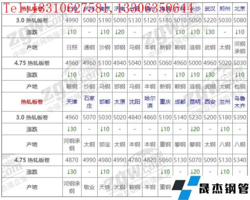 全國24個主要市場4.75 熱軋板卷平均價格5012元/噸,較上個交易日下調(diào)6元/噸。