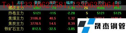 今日螺紋主力期貨跌74,收報4907,跌幅1.49%;熱卷主力跌115,收報5121,跌幅2.2%;焦煤主力漲40.5,收報3106,漲幅1.32%;焦炭主力漲14.5,收報3770.5,漲幅0.39%;鐵礦石主力跌32.5,收報812.5,跌幅3.85%。