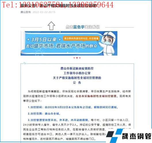 免責聲明:本網(wǎng)站(山東聊城晟杰無縫鋼管廠m.qiazhuo.cn)刊載的“突發(fā)!唐山全域性封控,鋼市影響升級”等均源于網(wǎng)絡(luò),版權(quán)歸原作者所有,且僅代表原作者觀點,本文所載信息僅供參考。轉(zhuǎn)載僅為學習與交流之目的,如無意中侵犯您的合法權(quán)益,請及時聯(lián)系刪除。本網(wǎng)站刊登此篇文章并不意味著本站贊同其觀點或證實其內(nèi)容的真實性,我們不對其科學性、嚴肅性等作任何形式的保證。如果侵犯了您的版權(quán),請盡快聯(lián)系我們予以撤銷,謝謝合作!