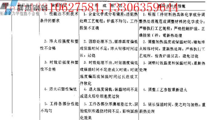▼表3有色金屬熱處理常見力學(xué)性能缺陷及防止方法