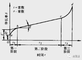 第三階段cd為加速蠕變階段隨著時間的延長,蠕變速率逐漸增大,到d點時產生蠕變斷裂。