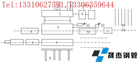 12 冷床:步進梁式,由動梁和靜梁組成。動梁由提升電機和平移電機驅動,這種冷床的特點:(1)冷卻均勻,(2)厚壁鋼管表面損傷少,(3)具有矯直功能