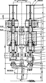軋輥調(diào)整裝置保證按照軋制要求調(diào)整孔喉和輾軋角,由兩個(gè)電動(dòng)壓下絲杠完成的,它們可單獨(dú)操作,也可以同時(shí)操作,當(dāng)兩個(gè)壓下絲杠進(jìn)行反向運(yùn)動(dòng)時(shí),可調(diào)整軋輥的輾軋角,確定輾軋角后,兩個(gè)絲杠同時(shí)壓下或抬起可調(diào)整軋輥的孔喉尺寸。在兩個(gè)壓下絲杠之間,機(jī)架內(nèi)有一個(gè)液壓缸與軋輥?zhàn)B接,它的作用是保持輥箱的穩(wěn)定,避免壓下絲杠端部與轉(zhuǎn)轂之間產(chǎn)生間隙,我們稱之為平衡缸。