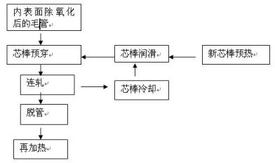 C(或重新預熱到此溫度)的芯棒,經輥道和運輸鏈到潤滑站噴涂石墨進行循環使用。經噴涂石墨后的芯棒,由運輸鏈送至預穿前設定位置。如更換新芯棒時,需在芯棒預熱爐內將其預熱到100±30