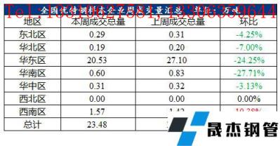 2、本周全國優特鋼棒材樣本企業成交量23.48萬噸,環比下降6.7萬噸,降幅22.2%,同比下降1.36萬噸,降幅5.48%。