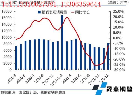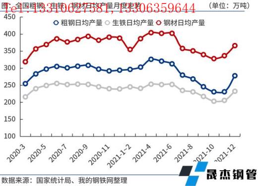 2021年12月份,全國粗鋼日均產(chǎn)量278.04萬噸,環(huán)比大增20.3%,預計1月份產(chǎn)量變化不大。臨近春節(jié)假期,鋼市進入傳統(tǒng)需求淡季。不過,由于多部門集中出臺穩(wěn)增長政策,市場情緒得到提振,加之無縫鋼管廠家集中補庫,原燃料價格強勢上漲,推動鋼價震蕩偏強運行。今年我國基建投資有望發(fā)力,但房地產(chǎn)投資不容樂觀,鋼鐵消費或弱于去年。如果節(jié)后無縫鋼管廠家適度控制產(chǎn)能釋放,合理安排復工復產(chǎn)進度,實現(xiàn)供需動態(tài)平衡,鋼價或延續(xù)震蕩偏強運行。
