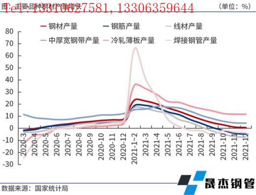 2021年12月份,鋼筋、線材、中厚寬鋼帶、冷軋薄板等日均產(chǎn)量分別為64.6萬噸、41.0萬噸、51.6萬噸和14.2萬噸,分別較上月增加5.4萬噸、4.3萬噸、8.6萬噸和1.2萬噸;焊接鋼管日均產(chǎn)量16.9萬噸,較上月基本持平。受春節(jié)假期及冬奧會影響,預計2022年1月份鋼材日均產(chǎn)量先增后降。
