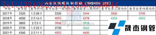 三、近五年山東建筑厚壁無縫鋼管春節(jié)均價走勢: