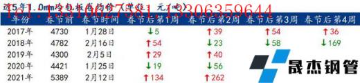 上海冷軋:節前上海冷軋價格為1.0鞍卷5370,本卷5360,鞍板5590,本板5440,青山卷5500,唐二卷5360,首卷5370,邯卷5360;1.5-2.0各大無縫厚壁鋼管廠家5290-5410(元/噸)。市場方面,春節市場處于休市狀態,基本無成交。庫存方面,據商家反饋,節后或將有不少資源入庫,預計上海冷軋庫存節后延續節前累庫趨勢。就節后市場而言,需求方面;作為冷軋主要的消費下游,汽車和家電兩大行業在三月份都為傳統的產量旺季。同時據市場反饋,由于節前行情波動較大,大部分終端態度謹慎按需采購為主,當前下游庫存量并不高。綜合來看,節后上海市場冷軋板卷價格或將由下游補庫需求帶動小幅上漲。