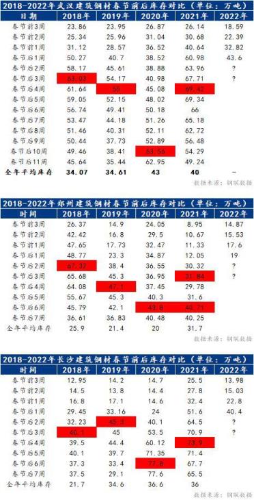 小編匯總近5年春節(jié)后7周中南區(qū)域建筑厚壁無縫鋼管庫存變化及庫存峰值時間節(jié)點(diǎn)。具體情況如下表所示: