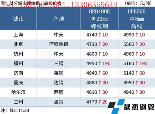 ◎福州:7日早盤建材市場價(jià)格大漲190,現(xiàn)線三鋼5160三寶5140,螺三鋼4950三寶4930大東海4930吳鐵4920,盤三鋼5230三寶5210。(單位:元/噸)