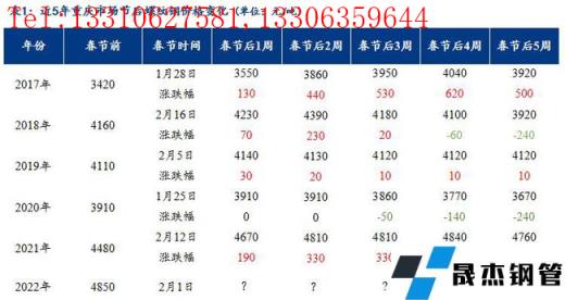 免責聲明:本網站(山東聊城晟杰無縫鋼管廠m.qiazhuo.cn)刊載的“近5年春節前后重慶螺紋鋼市場走勢”等均源于網絡,版權歸原作者所有,且僅代表原作者觀點,本文所載信息僅供參考。轉載僅為學習與交流之目的,如無意中侵犯您的合法權益,請及時聯系刪除。本網站刊登此篇文章并不意味著本站贊同其觀點或證實其內容的真實性,我們不對其科學性、嚴肅性等作任何形式的保證。如果侵犯了您的版權,請盡快聯系我們予以撤銷,謝謝合作!