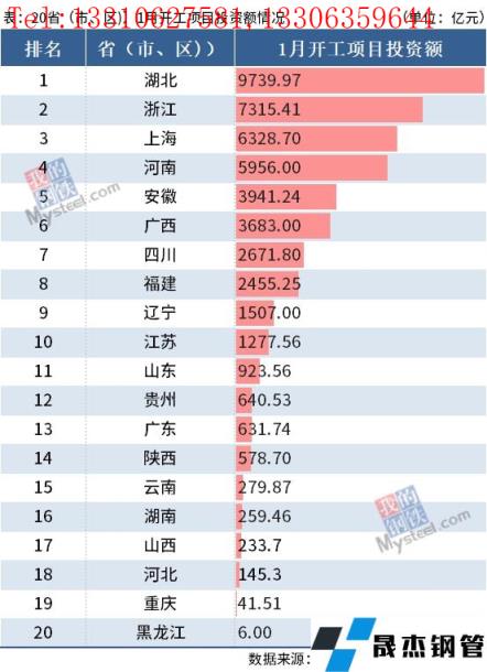 資料顯示,1月廣西、河南、安徽、浙江、四川5省進(jìn)行了全省集中開工活動(dòng),而湖北省由于各市縣區(qū)的密集開工,總投資額近1萬(wàn)億元,排名位居榜首。具體來(lái)看,1月湖北省共進(jìn)行了26次開工活動(dòng),其中1月18日,武漢市199個(gè)億元以上重大項(xiàng)目集中開工,總投資3277億元,包括68個(gè)先進(jìn)制造業(yè)項(xiàng)目、50個(gè)現(xiàn)代服務(wù)業(yè)項(xiàng)目、51個(gè)基礎(chǔ)設(shè)施和生態(tài)環(huán)境項(xiàng)目、30個(gè)社會(huì)民生及其他項(xiàng)目,是湖北省最大的一次開工活動(dòng)。