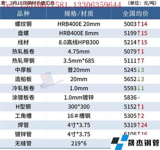 建筑厚壁無縫鋼管:2月10日,全國31個主要城市20mm三級抗震螺紋鋼均價5003元/噸,較上個交易日上漲14元/噸。本周建材產(chǎn)量受春節(jié)影響小幅回落;廠庫、社庫大幅增加,表觀消費(fèi)小幅上升。短期來看,目前市場實(shí)際需求并未啟動,現(xiàn)貨價格多受情緒面驅(qū)動上漲,支撐力有限。因此預(yù)計(jì)短期現(xiàn)貨市場在情緒面驅(qū)動下價格仍有拉高的可能。