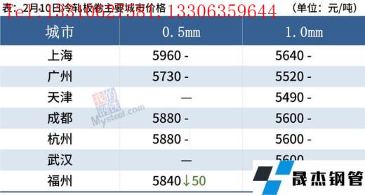冷軋板卷:2月10日,全國24個主要城市1.0mm冷卷均價5593元/噸,較上個交易日下跌1元/噸。今日黑色系期貨盤面整體呈低開高走的態(tài)勢,在期貨盤面的影響下,午后市場詢單人數(shù)明顯增加,但由于下游客戶觀望情緒較為濃厚,今日整體成交一般。庫存方面,據(jù)不完全統(tǒng)計(jì),現(xiàn)冷軋無縫厚壁鋼管廠家?guī)齑?3.71萬噸,周環(huán)比增加0.5萬噸,社會庫存139.17萬噸,周環(huán)比增加5.47萬噸,周消費(fèi)量67.89萬噸,環(huán)比減少1.26萬噸。綜合來看,故預(yù)計(jì)11日國內(nèi)冷軋板卷價格或?qū)⒄鹗庍\(yùn)行。