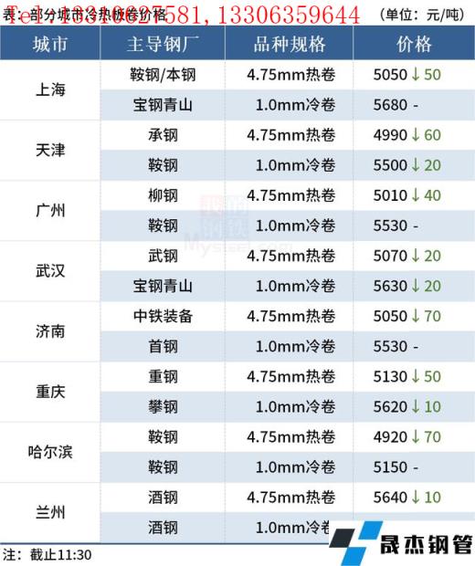 ◎樂從:14日早盤熱卷市場價格下跌40,4.75以上普柳燕5010-5020,2.75普5050-5200錳5200-5220。(單位:元/噸)