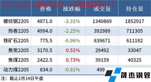 免責聲明:本網站(山東聊城晟杰無縫鋼管廠m.qiazhuo.cn)刊載的“2022年02月14日午報:鋼價多數下跌,鐵礦石期貨跌逾6%”等均源于網絡,版權歸原作者所有,且僅代表原作者觀點,本文所載信息僅供參考。轉載僅為學習與交流之目的,如無意中侵犯您的合法權益,請及時聯系刪除。本網站刊登此篇文章并不意味著本站贊同其觀點或證實其內容的真實性,我們不對其科學性、嚴肅性等作任何形式的保證。如果侵犯了您的版權,請盡快聯系我們予以撤銷,謝謝合作!