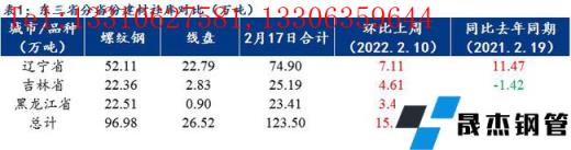 本周東三省建筑厚壁無縫鋼管現(xiàn)貨庫存整體較上周增加15.16萬噸,相比上周37.40%的增速本周明顯放緩,其中螺紋鋼現(xiàn)貨庫存96.98萬噸,線盤26.52萬噸,建材社會庫存總量為123.50萬噸,較上周增15.16萬噸,增幅13.99%。相比春節(jié)期間累庫較多,本周東北區(qū)域內(nèi)建材現(xiàn)貨增加不多,各市場倉庫到貨一般。