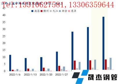從本周各主流市場庫存走勢來看,各主流市場庫存均繼續(xù)累積。其中南昌市場庫存增幅最大,增幅達(dá)到23.20%;九江和新余市場庫存增幅在15%-17%之間;贛州和鷹潭市場庫存增幅在10%以下。目前來看,無縫厚壁鋼管廠家正常發(fā)貨,雖然省內(nèi)多數(shù)商家已經(jīng)開市,但只有少數(shù)工地零星啟動,市場終端需求整體偏弱,成交清淡,以投機鎖貨為主,市場庫存持續(xù)累積。