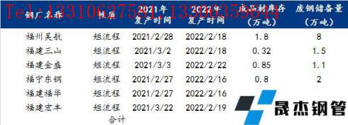 4、當前福建省短流程無縫厚壁鋼管廠家廢鋼儲備庫存約16.6萬噸,較去年同期減少1萬噸左右。