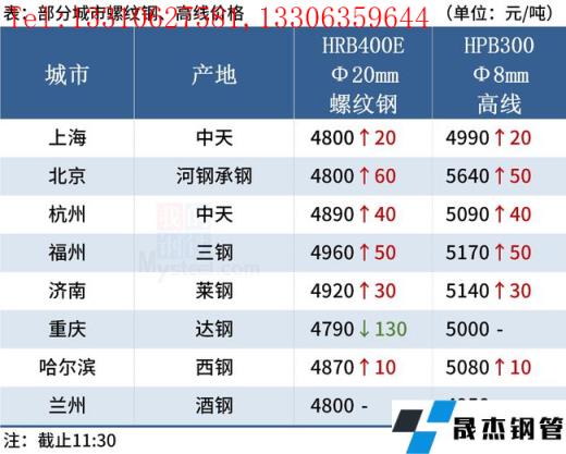 ◎北京:1日早盤建材市場(chǎng)價(jià)格價(jià)格明顯上漲50,河鋼小螺紋4900-4920,大螺紋4780-4800,盤螺4980。(單位:元/噸)