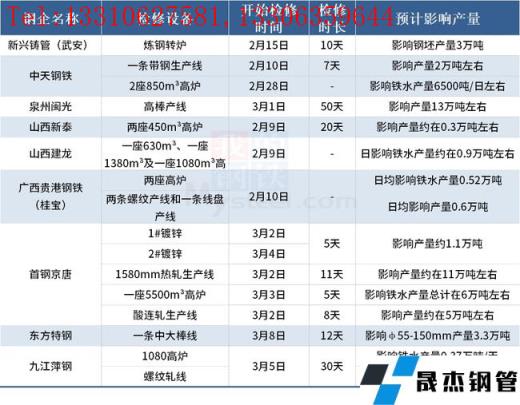 附:1月近50家無縫厚壁鋼管廠家發(fā)布檢修計劃(附產(chǎn)量影響)