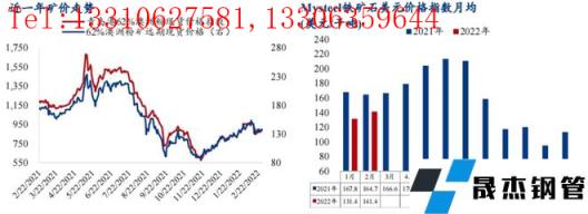 回顧2月鐵礦基本面情況,遠期供應端2月份全球鐵礦石發運量受到澳大利亞的泊位檢修和巴西的持續降雨影響下降,較1月減少2186萬噸至1.02億噸;近端供應由于前期發運偏低,2月份中國45鐵礦石到港量同步回落。需求方面,2月高爐鐵水產量在冬奧會期間嚴格限產的影響下先降后增,整體較1月下降。鐵礦石供需兩端雙降,但是供應降幅更大,供需差從1月的1200萬噸收窄至311萬噸,但仍不改供大于求的局面。體現到庫存端,2月港口庫存月環比累庫577萬噸,在港船舶減少了44條,因此2月鐵礦石基本面矛盾較小,對礦價并無支撐作用。此外,冬奧會限產嚴格疊加春節期間無縫厚壁鋼管廠家消耗自有庫存為主,無縫厚壁鋼管廠家需求低迷下礦價下行壓力較大,同時2月政府對價格監管力度加強抑制部分投機需求,因此2月整體礦價震蕩下行。