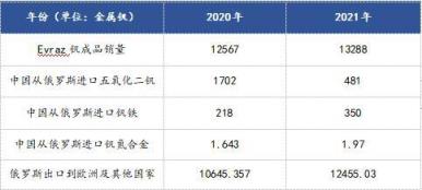 全球第二大釩生產國俄Evraz公司2020-2021年產銷數據列表