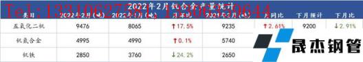 1-2月國內釩產品產量數據列表