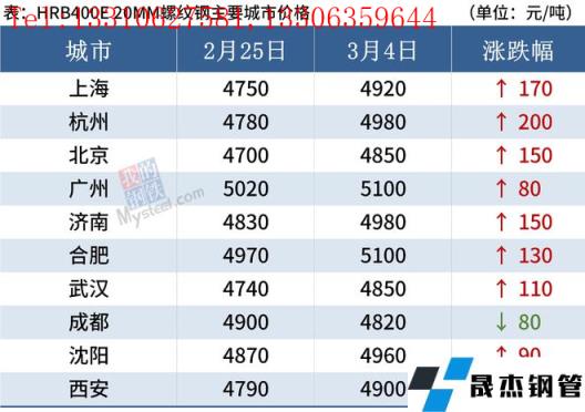 據(jù)監(jiān)測,截至3月4日,全國主要城市20mm三級抗震螺紋鋼均價(jià)4946元/噸,周環(huán)比上漲77元/噸;8.0mmHPB300高線均價(jià)5161元/噸,周環(huán)比上漲94元/噸。
