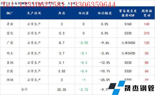 數據:山東優特無縫厚壁鋼管廠家庫存25.35萬噸,環比下降2.72萬噸,減少9.69%,同比增加2.19萬噸,增長9.46%。