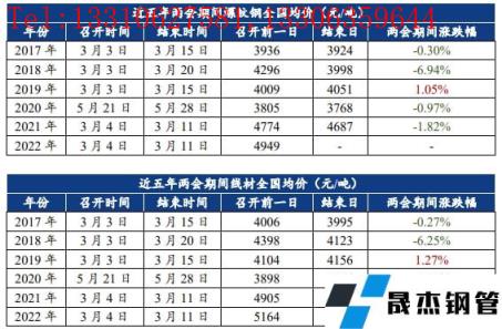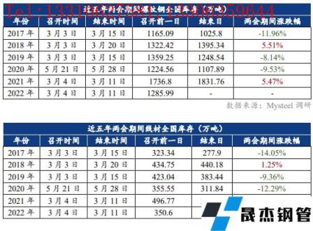 3月4日和5日,全國政協(xié)十三屆五次會議和十三屆全國人大五次會議先后在北京開幕。整理了過去五年兩會期間建筑厚壁無縫鋼管價格和庫存的數(shù)據(jù)變化。