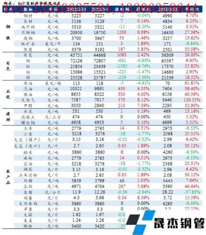 本周大宗商品價格漲跌互現:其中厚壁無縫鋼管價格沖高回落,但均價高于上周;不銹鋼價格呈現先漲后跌的大幅波動走勢;有色金屬價格多數下跌;石化方面,本周國際原油價格高位震蕩,價格低于上周;成品油價格繼續上漲;LNG價格上漲;建筑材料方面,水泥價格小幅上漲,混凝土價格持穩運行,螺紋鋼價格沖高回落,小幅上漲;農產品方面,農產品價格漲跌互現,主要產品中雞蛋、豆粕表現較為強勁,價格呈現一定幅度上漲,國內豆油及生豬市場價格均偏弱下跌。