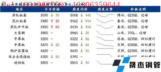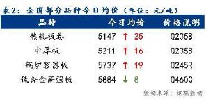 今日全國部分品種均價總體趨強,其中低合金高強板均價小幅下跌,跌幅為8元/噸。